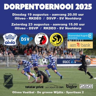 Dorpentoernooi Pijnacker-Nootdorp 2025 – Oliveo vs. RKDEO: 1-1 Foto’s: https://www.icloud.com/sharedalbum/#B1nGAhnhc4HrtP Op dinsdagdagavond 19 augustus 2025 troffen..