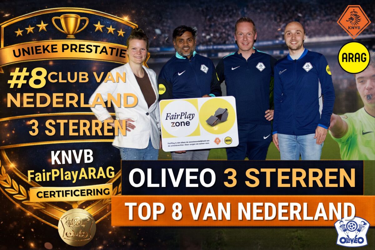 Maandag 13 april heeft Oliveo officieel het KNVB ARAG Fair Play certificaat.