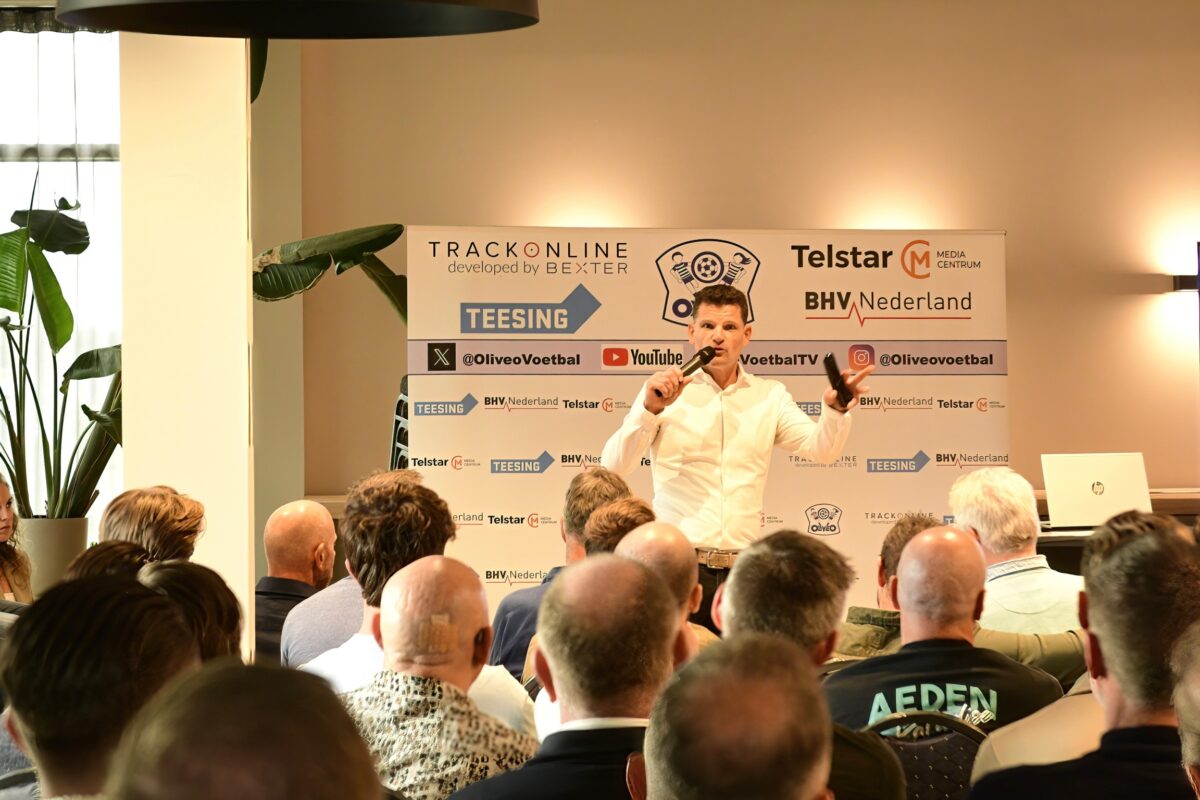 Hoofdtrainer Mark Moen gaf een presentatie over zijn voetbalvisie voor Oliveo.